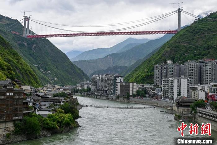 大渡河上的泸定桥,远处一座新的大桥正加紧建设。刘忠俊 摄
