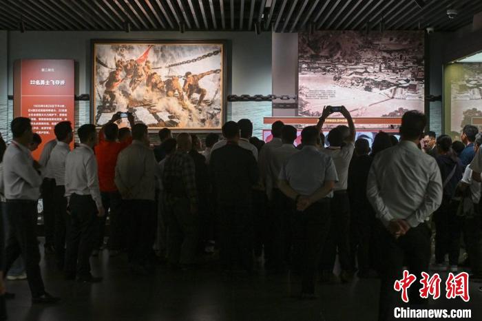纪念馆内红军飞夺泸定桥的展陈吸引参观者们。刘忠俊 摄