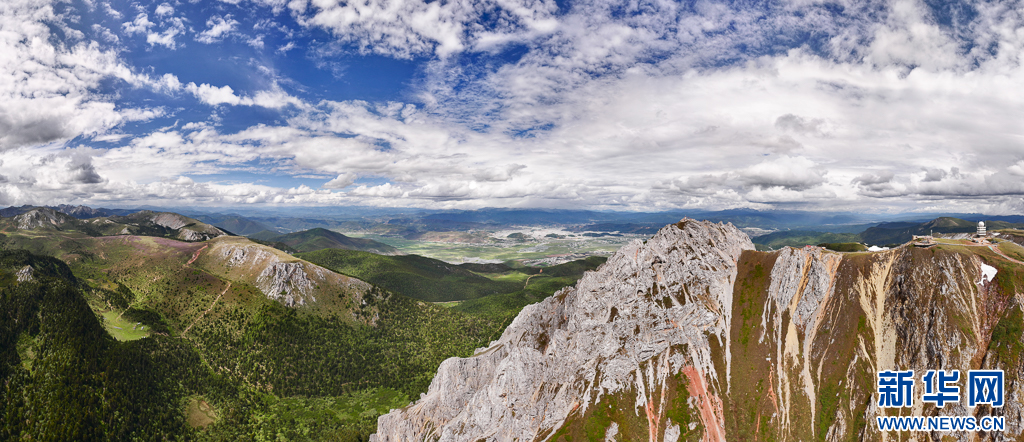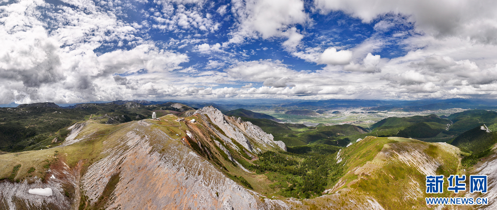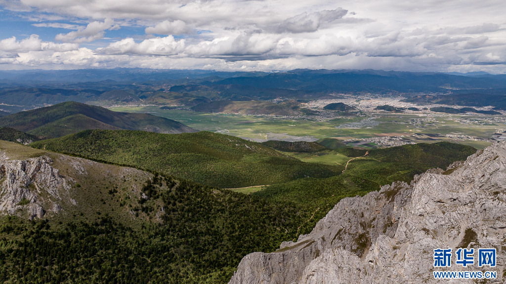 俯瞰石卡雪山及纳帕海(6月10日摄)。新华网 刘东 摄