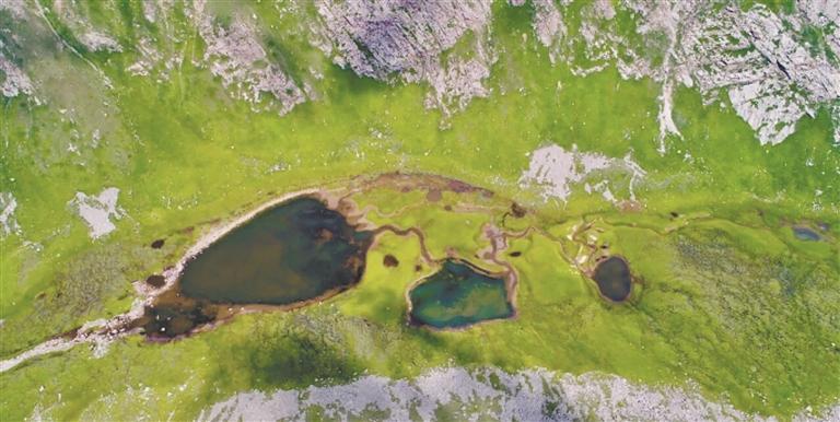 鸟瞰三姊妹湖。甘德县文体旅游广电局供图