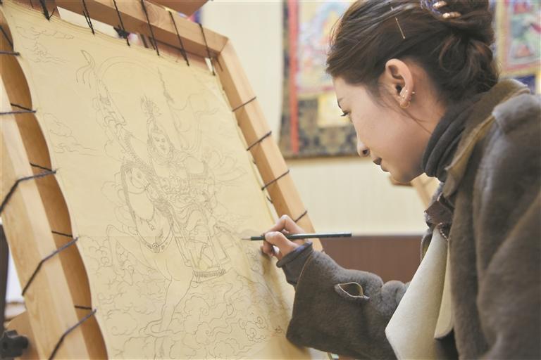 非遗代表性传承人绘制唐卡。苏烽 摄