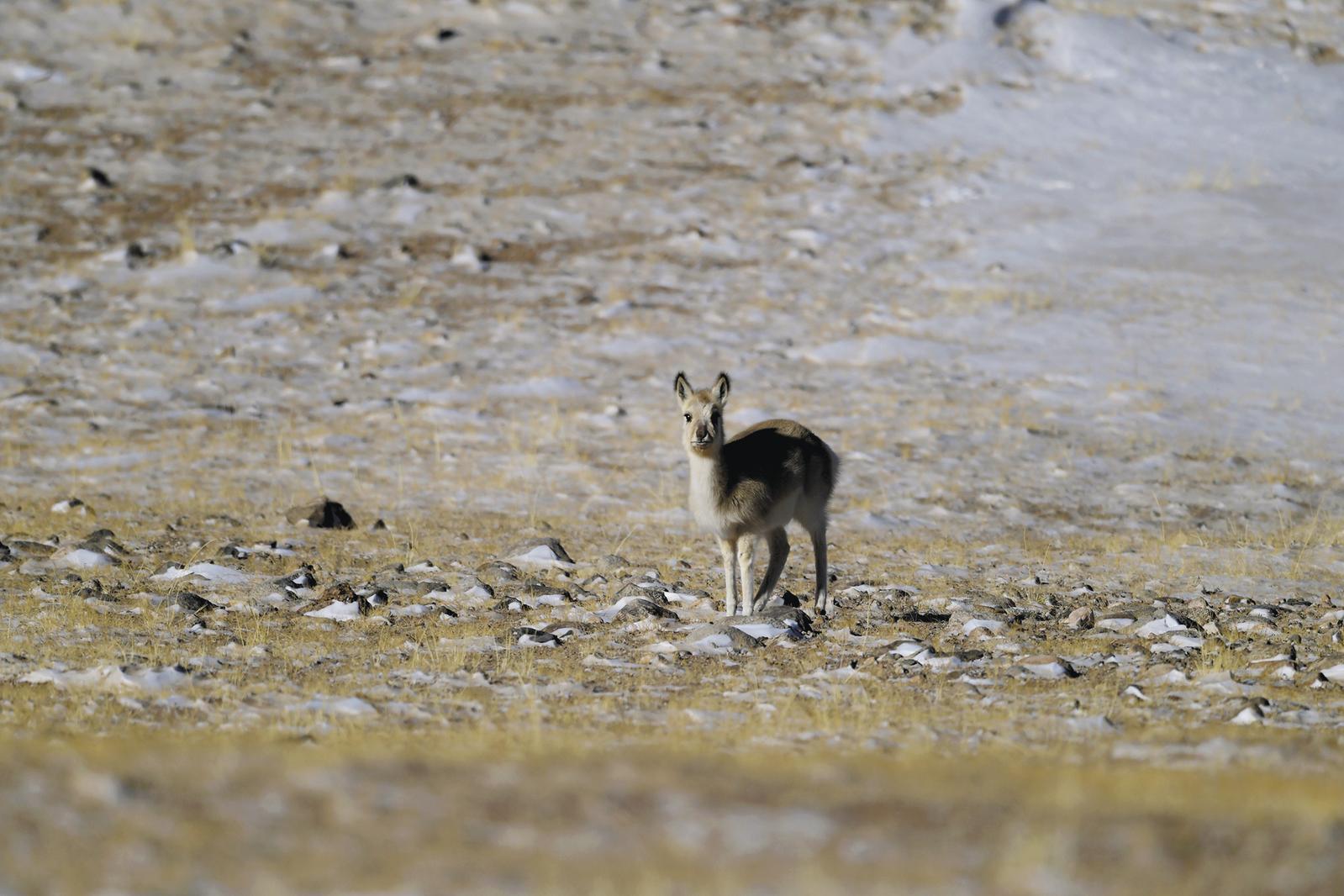 进入可可西里后见到的第一只野生动物是一只可爱的藏原羚。