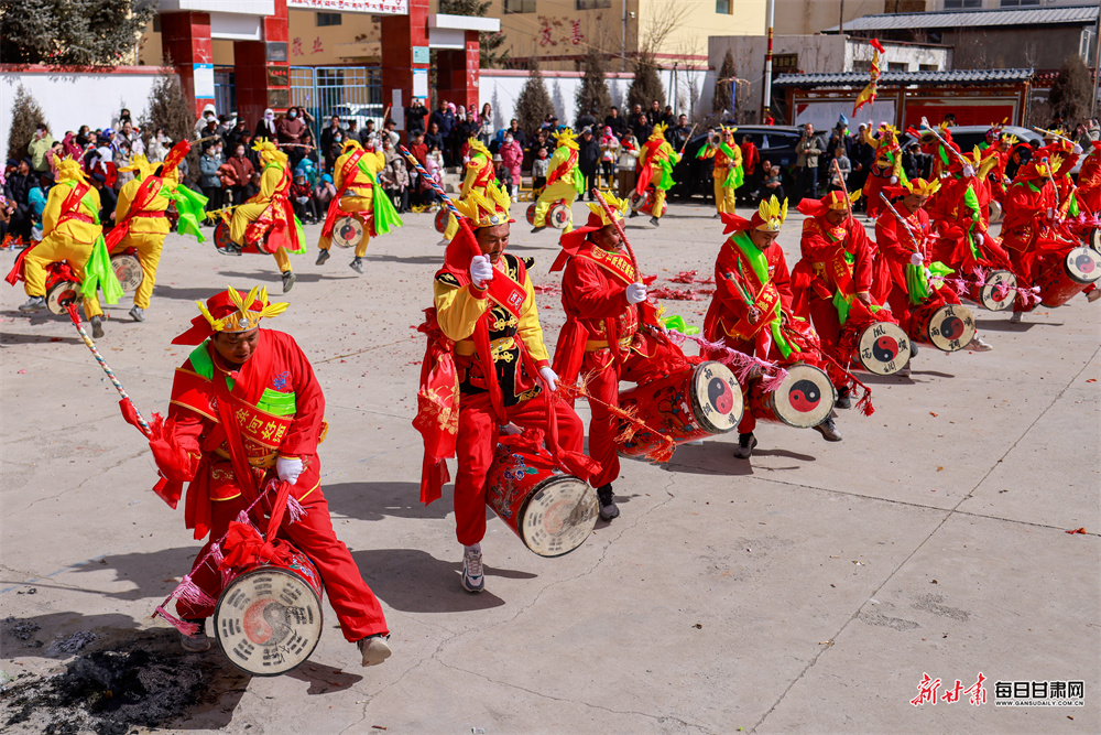 春节期间,雪域高原年味浓郁,独具华锐藏乡特色的社火表演在天祝乡村火热上演。自正月初九以来,天堂镇科拉、本康等村寨锣鼓喧天、喜气盈门,热闹的民俗活动为新春增添浓浓喜庆。
