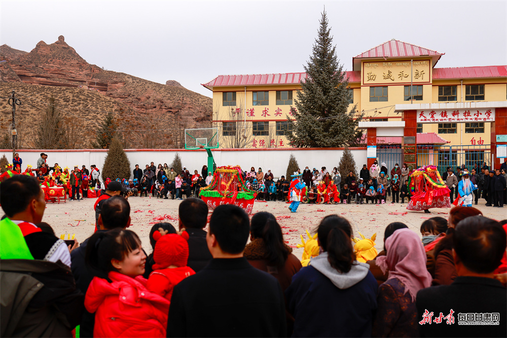 舞狮腾跃、旱船轻盈,白牦牛舞作为天祝独有的民俗符号惊艳亮相,生动展现高原文化魅力。各族群众欢聚一堂、载歌载舞,在欢腾中闹新春、祈安康,既传承非遗文脉,又尽显乡村振兴下各族群众幸福祥和的精神风貌,勾勒出高原乡村团结奋进、其乐融融的新春画卷。