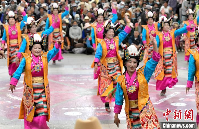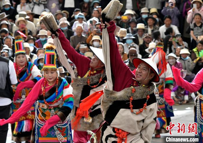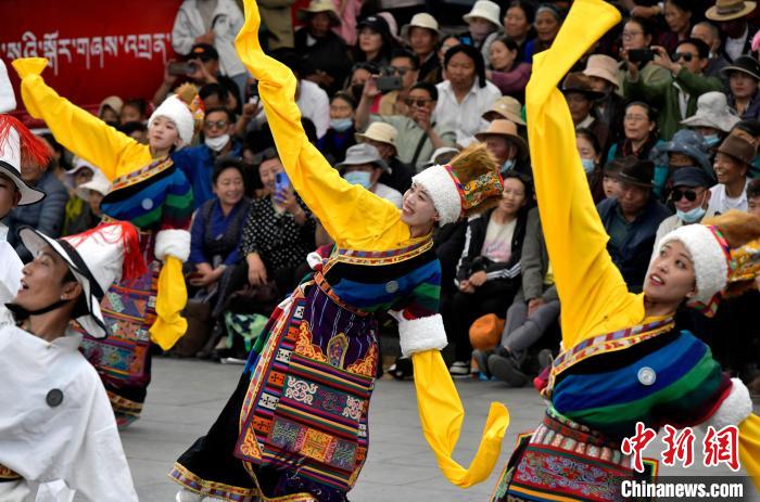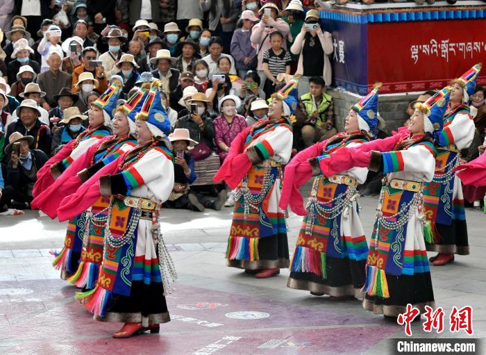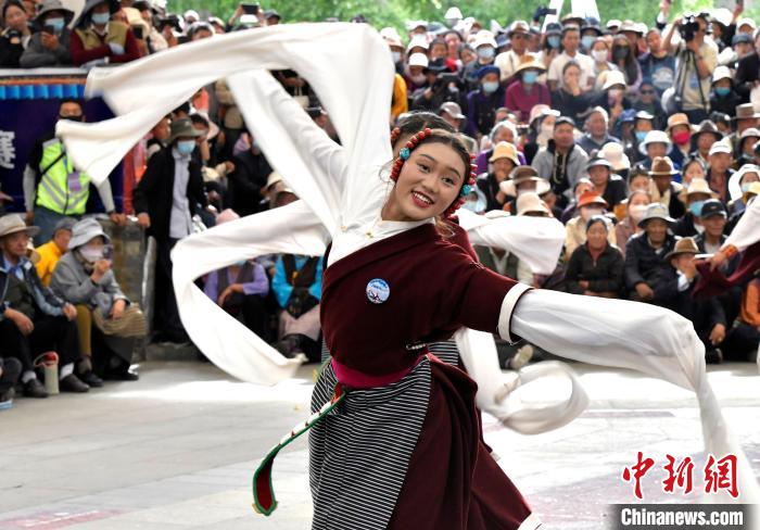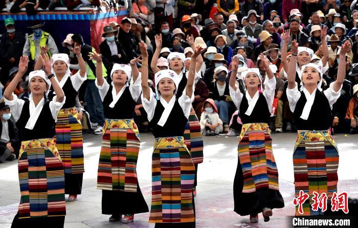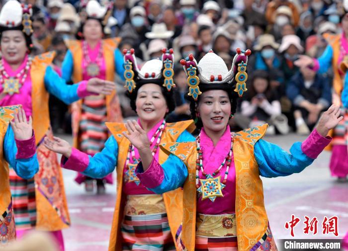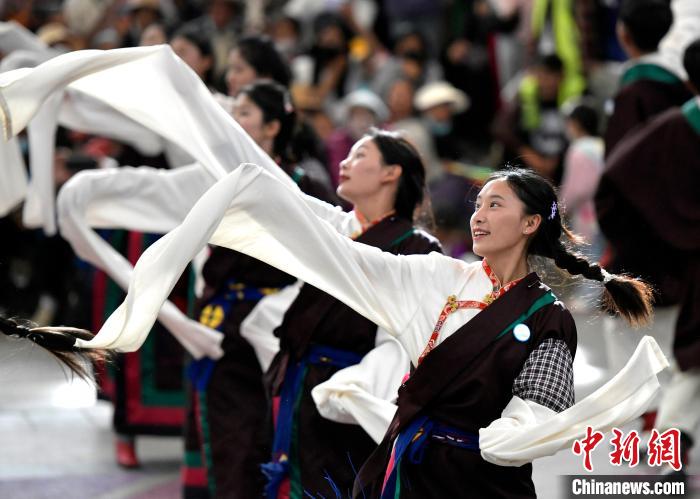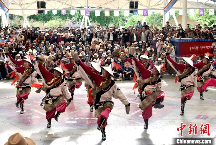 图为锅庄舞大赛决赛现场。中新社记者 李林 摄