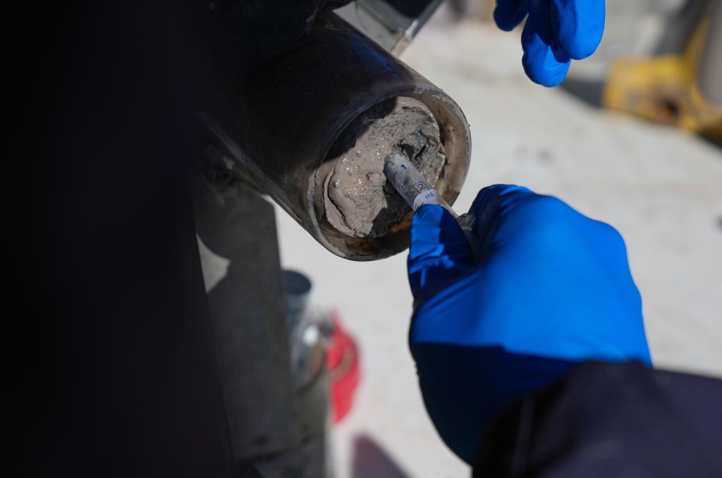 钻取含有泥土、砂石的湖泊岩芯却是一项复杂且精细的工作。科研人员利用集成的钻探系统,小心翼翼地从湖底取出连续的湖泊岩芯样本,这些装着湖泊岩芯的采样管如同“时间胶囊”,封存着青藏高原纳木错地区百万年来的环境气候变化信息。