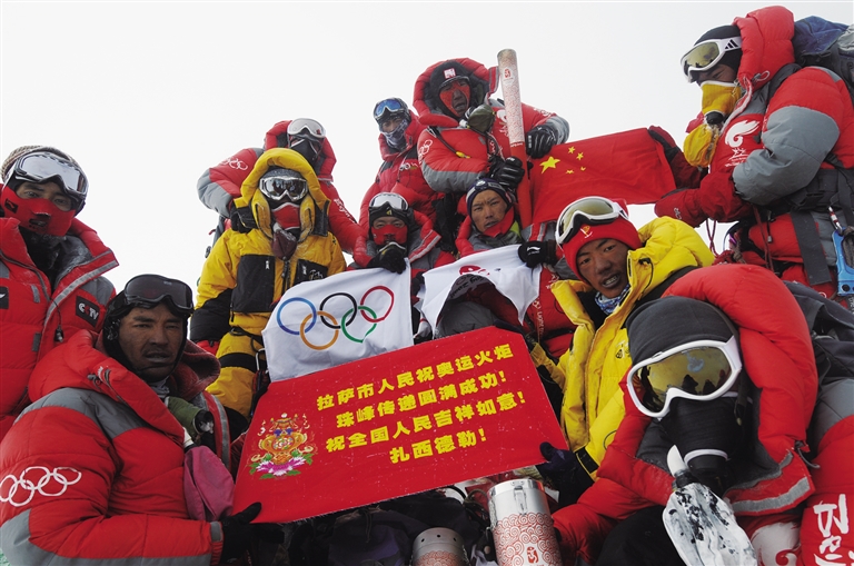 2008年,北京奥运火炬在珠峰峰顶传递。自治区体育局供图。