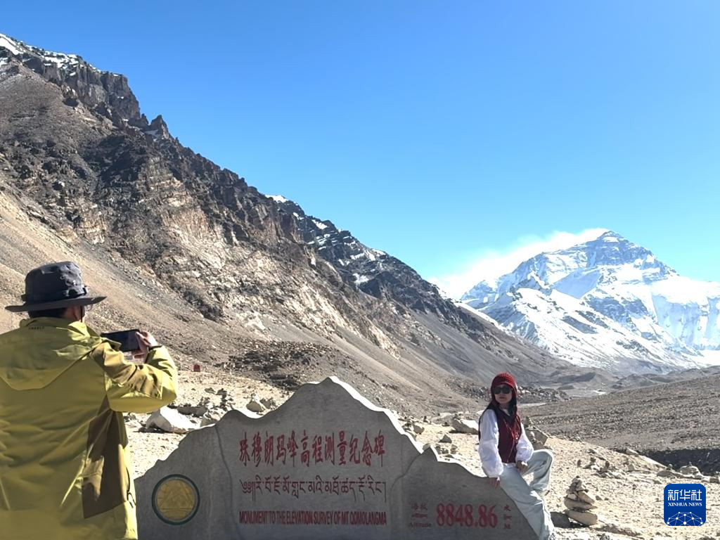 11月20日,游客在珠峰景区拍照留影。新华社记者 卢丹阳 摄
