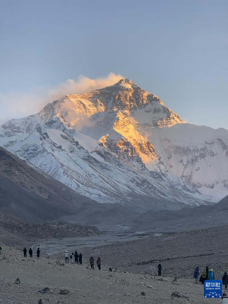 11月20日,游客在拍摄珠穆朗玛峰日照金山景观。新华社记者 邱星翔 摄