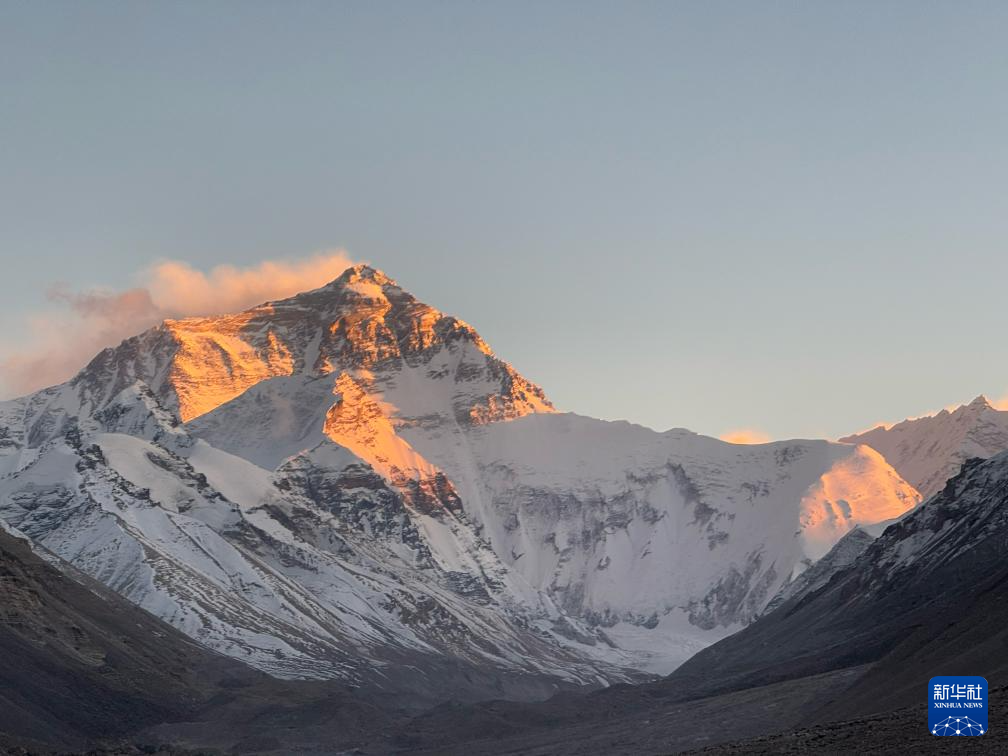 这是11月20日拍摄的珠穆朗玛峰日照金山景观。新华社记者 邱星翔 摄