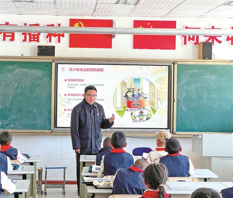 图为色尼区法院干警在学校讲法治课。记者 彭琦 摄