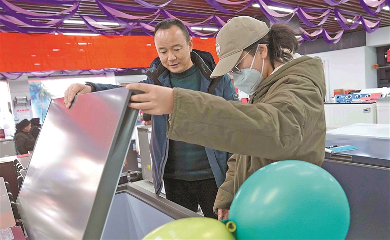 顾客在选购家用电器。记者 格桑伦珠 摄