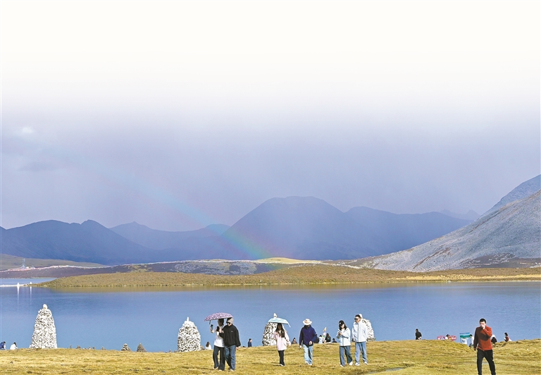 秋高气爽的九月,市民游客在思金拉错游玩(资料图片)。记者 王敏 摄