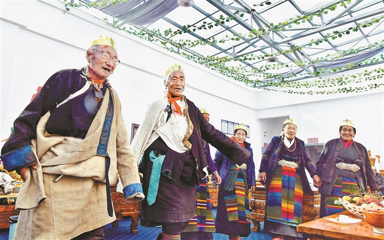 从基础设施的坚实保障,到寻常人家的温暖日常,发展的温度在细节中流淌。在海拔4300米的定结县切村幸福院,老人们正围坐掷着“秀兹”,手捧温热的酥油茶。“院里设施齐全,生活很充实。”78岁的坚参笑着说。最让他安心的是定期上门的医疗服务——医生常来测量血压,守护着老人们的健康。这温馨一幕,正是“十五五”开局之年西藏养老服务保障扎实落地的缩影,让“老有所养、老有所乐”在雪域高原成为看得见、摸得着的幸福。