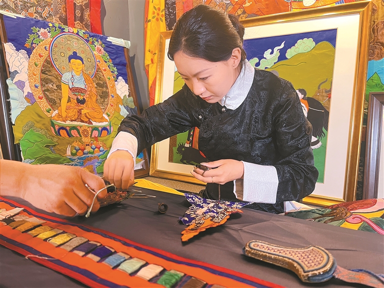在罗布、德吉等人的不懈努力下,拥有600多年历史的拉萨堆绣唐卡,于2021年被列入国家级非物质文化遗产代表性项目名录。越来越多的人开始了解、学习这项技艺。