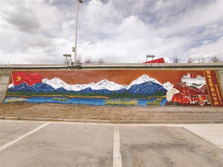 楼外文化墙建设以“坚守、攻坚、融情、为民”为核心,其中,主楼两侧的3D立体画以南山轮廓、布达拉宫为自然基底,融合党旗队旗与消防员坚定守护等场景,生动勾勒出指战员扎根西藏、攻坚克难的奋斗身影;浮雕墙则以“山地攻坚、重点值守、防火一线、生态守护”四大职能为核心内容进行雕刻,线条刚劲有力,成为营区标志性的精神符号,让高原消防精神触手可及。