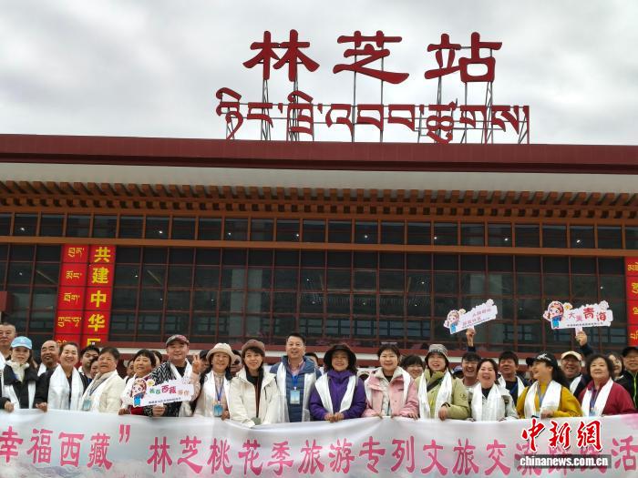 11日,“大美青海·幸福西藏”桃花季旅游专列缓缓驶入林芝火车站,330余名游客即将在林芝开启赏花之旅。
