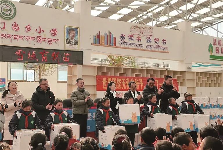 近日,由西藏航空、易宝公益、深圳壹基金公益基金会主办,西藏发展公益基金会承办的“暖包送温情 雪域育新苗”温暖包捐赠仪式,在那曲市班戈县门当乡小学举行。