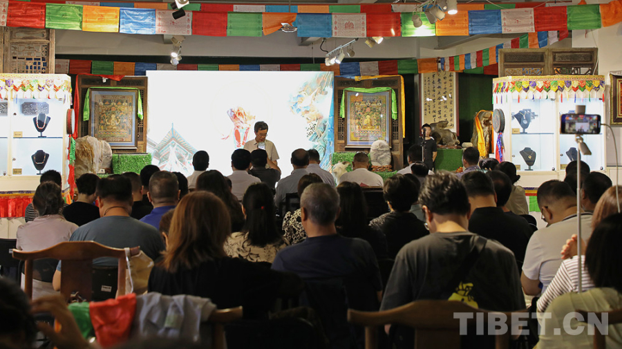 此次展览由西藏自治区人民政府驻北京办事处、北京市人民政府援藏指挥部指导,北京市社会建设促进会、北京建藏援藏工作者协会主办,旨在推进“以文促经”新型文商模式,在中秋节和国庆节期间,为北京市民呈上一场汉藏文化交流交融互鉴的盛宴。来自各指导单位、主办单位、丰台区、西藏文化博物馆相关负责人以及参展单位、新闻媒体约百余人参加了开幕式。北京市社会建设促进会宋贵伦主持开幕式,北京建藏援藏工作者协会副会长高扬致辞。