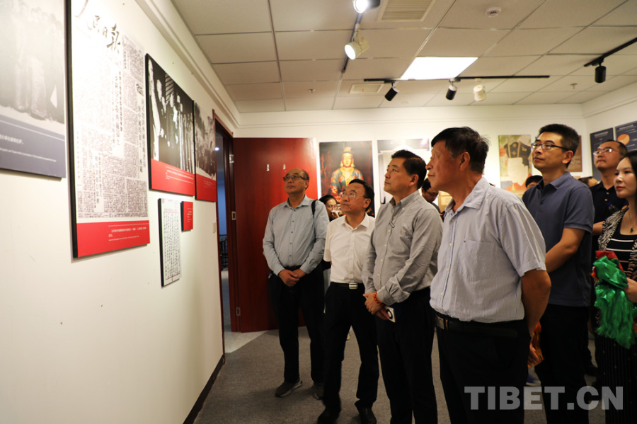 图为参加开幕式嘉宾参观丰功伟业——庆祝西藏和平解放70周年特展 摄影:王茜