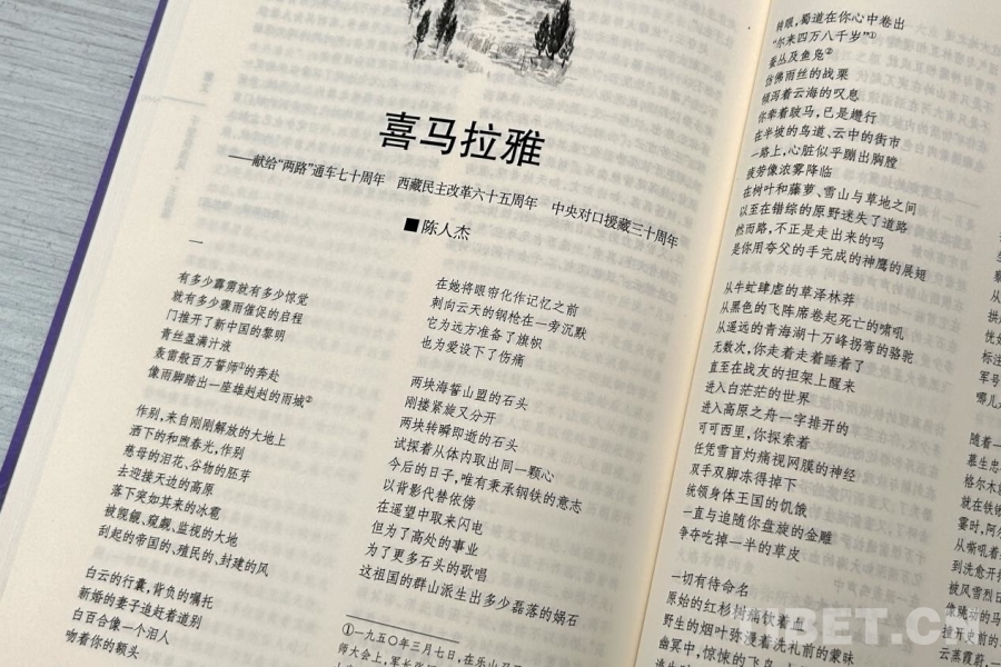 从地理喜马拉雅到“千行诗”《喜马拉雅》,第八届鲁迅文学奖获得者、西藏自治区文联副主席,同时也是本诗创作者陈人杰感慨万千。创作这首凝练了“两路”通车70周年、西藏民主改革65周年、中央对口援藏30周年历史性事件,涵盖了西藏前世今生到新时代西藏变化的长诗,并非易事。历经文思淤堵、无从下笔,到灵光乍现、一气呵成,陈人杰表示:“《喜马拉雅》的出炉,是天时地利人和,是新时代新征程的使然,是西藏的馈赠,是众水般心灵澄澈的力量汇聚起的浩荡的赞歌。”