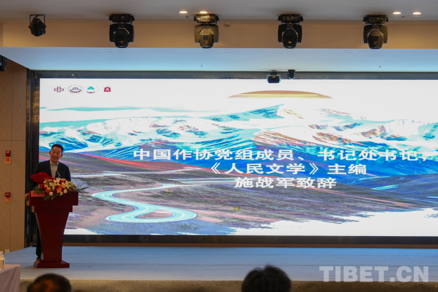 图为长诗《喜马拉雅》作者,第八届鲁迅文学奖获得者、西藏自治区文联副主席陈人杰致辞 摄影:边子捷