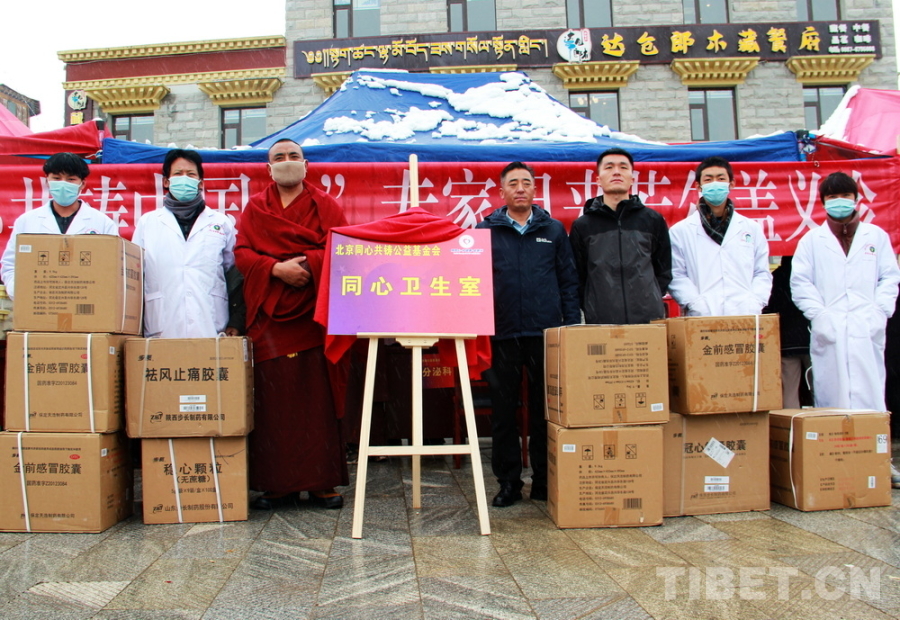 为使若尔盖郎木寺“同心卫生室”运作更加顺利,北京同心共铸公益基金会向该卫生室捐助了价值5万元的药品。(中国西藏网 记者/刘莉)