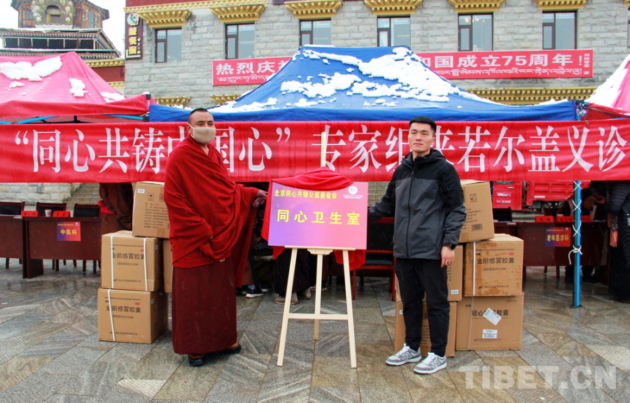 中国西藏网讯 10月26日,由北京同心共铸公益基金会与若尔盖郎木寺藏医院共同成立的“同心卫生室”在四川省阿坝藏族羌族自治州若尔盖县揭牌。若尔盖县委统战部有关领导出席了揭牌仪式。
