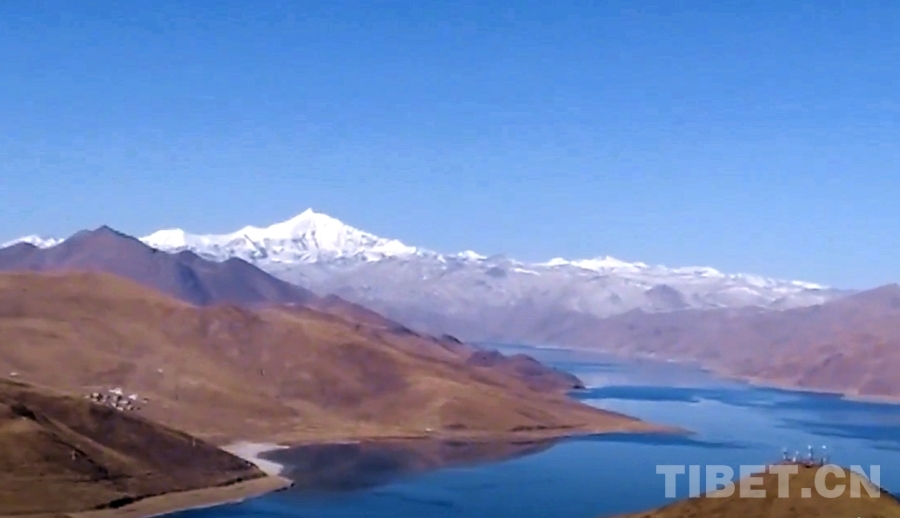 10月26日早上,探寻团队从拉萨出发到达岗巴拉山垭口,在那里观览乃钦康桑和羊卓雍错美景。羊卓雍错,藏语意为“碧玉湖”,湖面海拔4441米,面积638平方公里。乃钦康桑海拔7206米,是藏传佛教四大山神——西方山神诺吉康娃桑布居住之地。