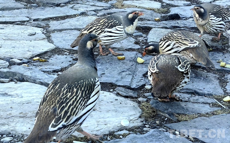 在曲登尼玛冰川附近,洛桑老还见到了以前在家乡常见的藏雪鸡,感到激动和欣慰,“它们最大特点是不怕人,见了人就翘起尾巴,咯咯咯地转圈圈。人们说它们展屏的尾巴上有千尊佛像,所以它们就不畏惧人。”