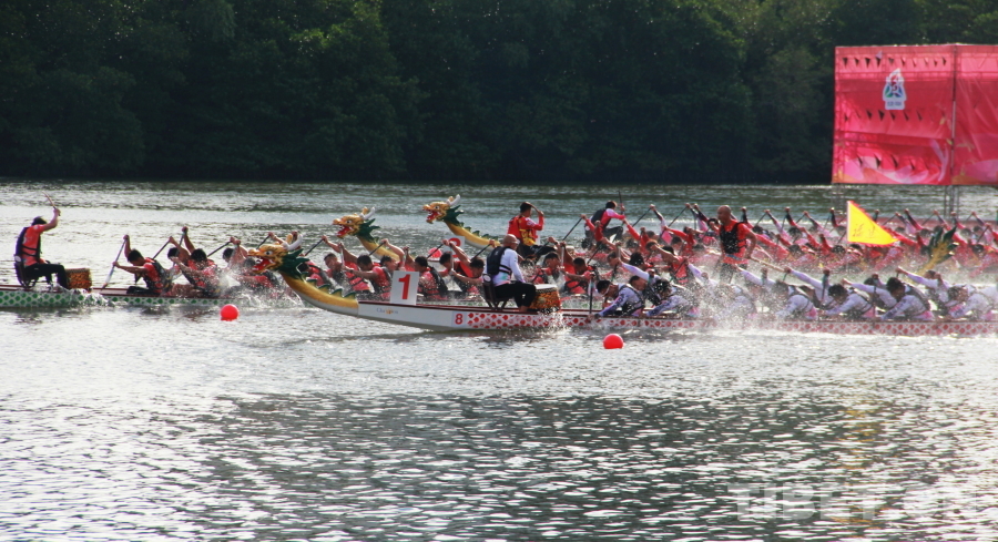 图为第十二届全国少数民族传统体育运动会龙舟项目比赛竞争激烈 摄影:刘莉