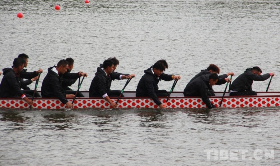 图为第十二届全国少数民族传统体育运动会龙舟项目中的贵州队 摄影:刘莉