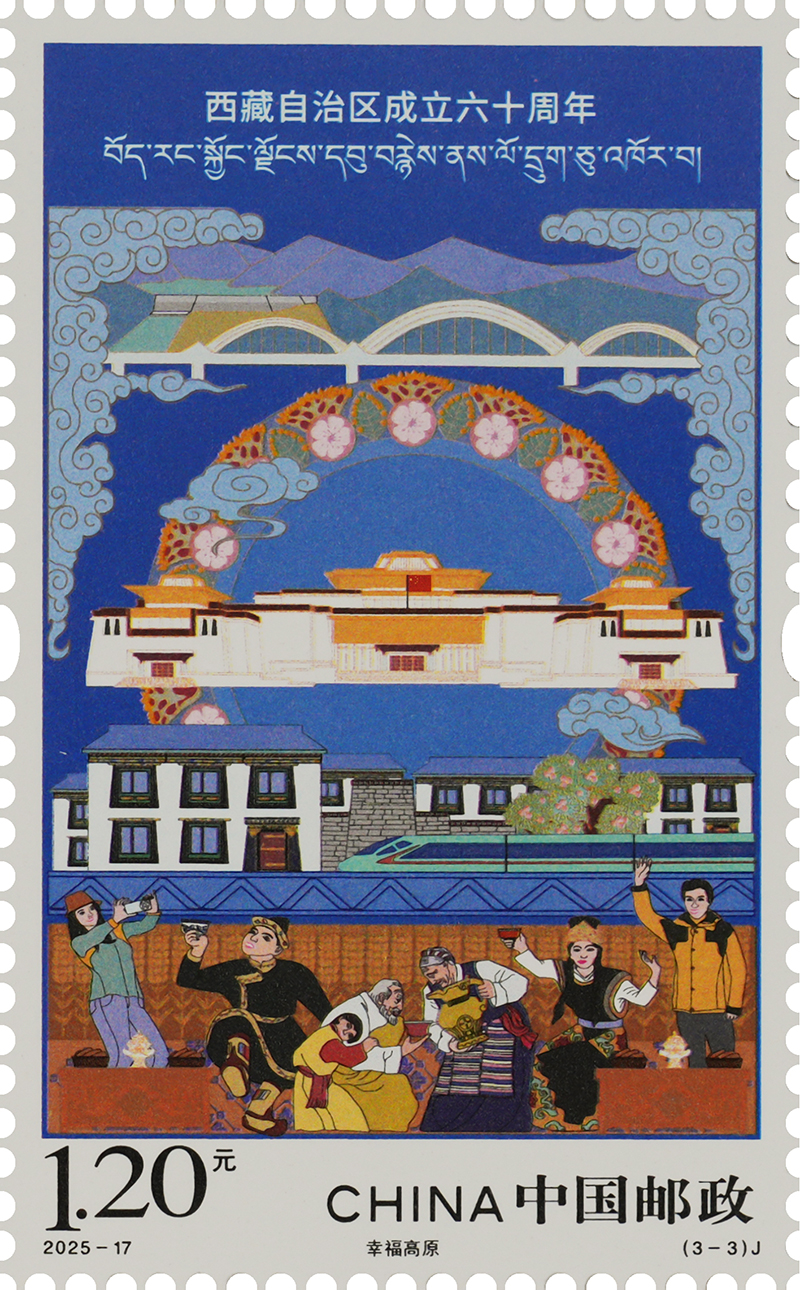 图为《西藏自治区成立六十周年》纪念邮票之“幸福高原” 中国邮政西藏分公司供图