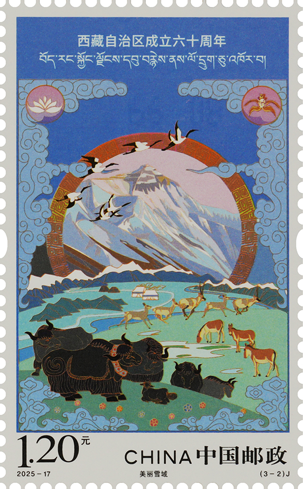 图为《西藏自治区成立六十周年》纪念邮票之“美丽雪域” 中国邮政西藏分公司供图