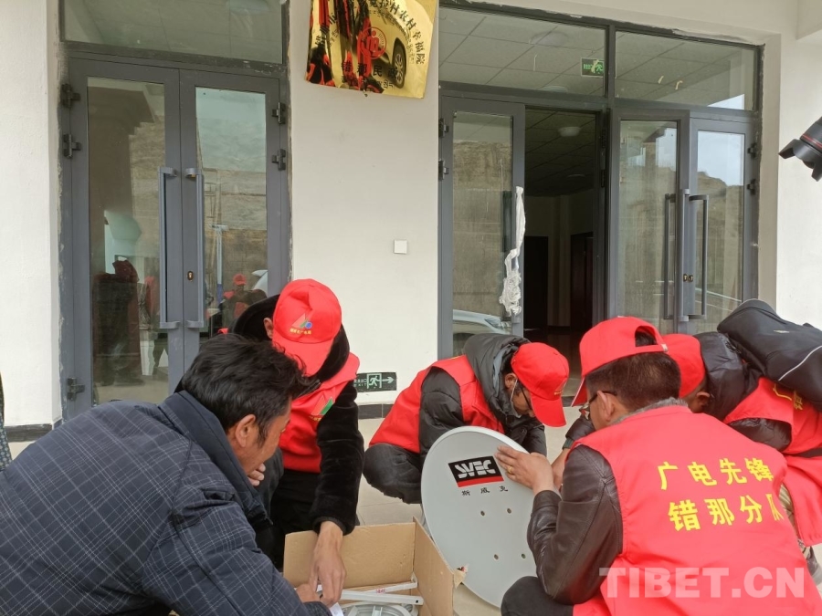 图为日喀则市萨迦县群众正在调试直播卫星“户户通”接收设备