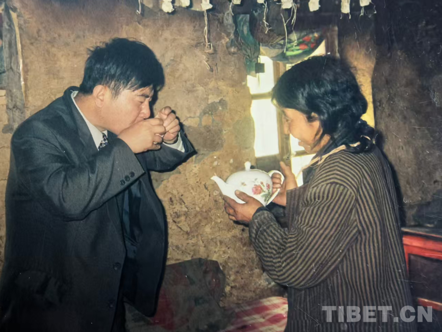 图为2002年10月,李建新在山南隆子县玉麦乡乡长卓嘎家 受访者供图