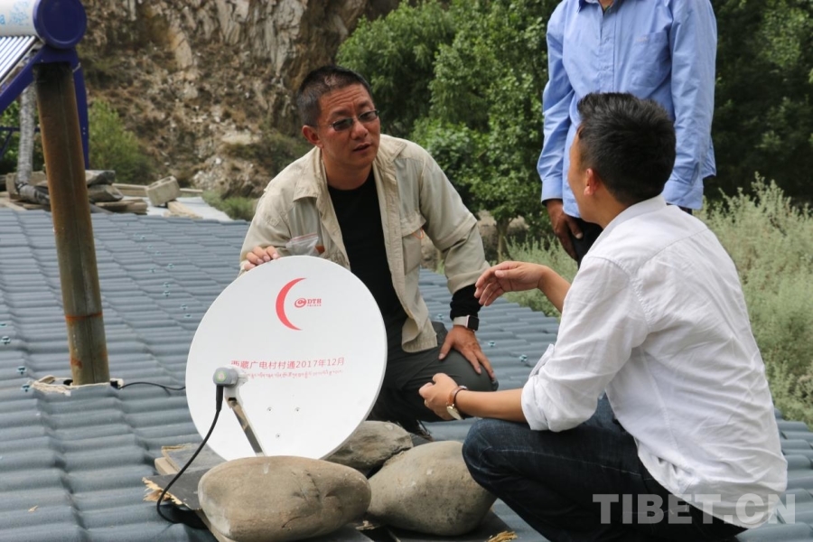 图为2018年7月,范成军在林芝市朗县检查村村通设备 受访者供图