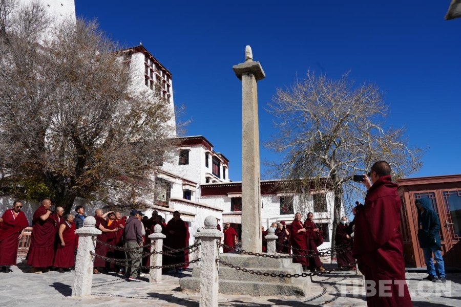 图为学员们前往布达拉宫实地参观学习 摄影:德吉卓玛