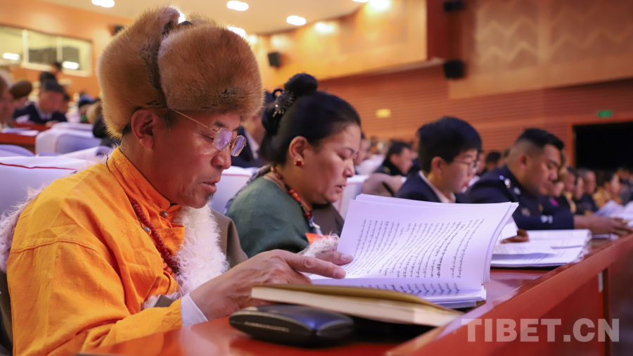 图为拉萨市十二届人大六次会议开幕会现场 摄影:贾华加