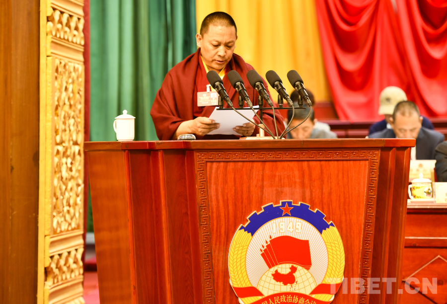 图为西藏自治区政协委员阿旺旦增在十二届西藏自治区委员会第四次会议中作大会发言 摄影:赵振宇