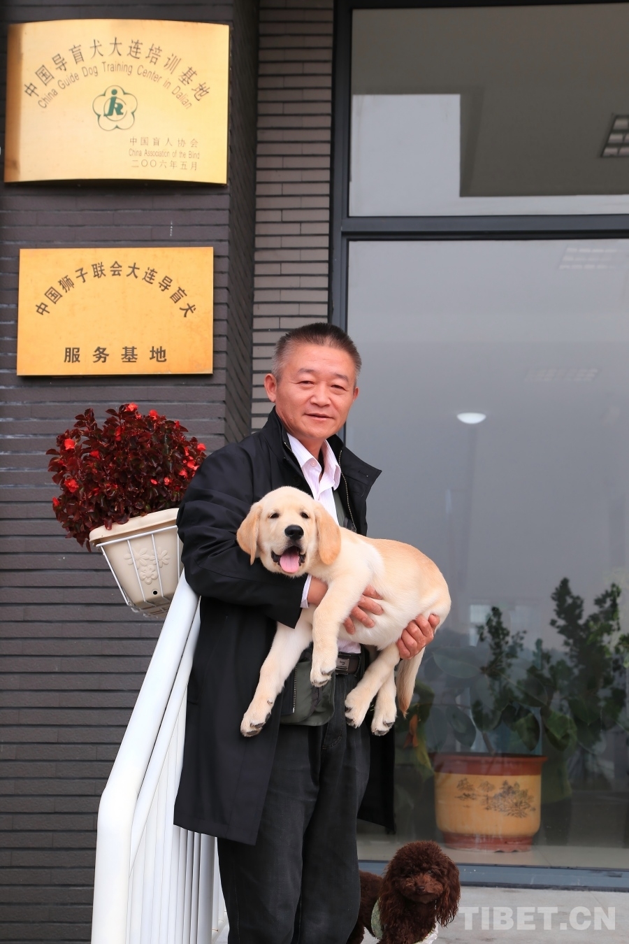 说起达琼与福桔的缘分,那就不得不提到中国导盲犬大连培训基地负责人王靖宇。王靖宇是大连医科大学博士生导师,专业是实验动物学、动物行为学。中国导盲犬大连培训基地是非营利公益机构,申请导盲犬也是免费的。然而,训练一只导盲犬至少需要十几万人民币的支出;申请到导盲犬后,光是狗粮等每月都得花费上千元,需要饲主有一定的经济实力养活犬只;再加上距离遥远,等等,“当全国的盲人都挤破我们门槛的时候,西藏都没人申请。”王靖宇说。为了推进导盲犬进入西藏,王靖宇请他的好朋友、也是在大连、经常去西藏的资深旅行家王永东寻找合适的机会。