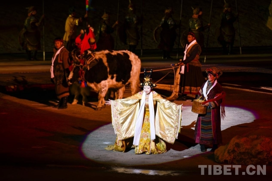 中国西藏网讯 3月22日,《文成公主》大型实景剧第十四季开演。该剧以1300多年前文成公主与松赞干布和亲联姻、促进民族融合发展的历史故事为核心,深度融入数十种非物质文化遗产,艺术再现民族文化交融盛景。《文成公主》实景剧第十四季再添创新亮点:在舞台背景山体呈现超大巨幅画面,全景展现大明宫恢弘气势与雪域高原壮美辽阔,进一步提升剧目视觉冲击力与文化辨识度。(中国西藏网 记者/赵振宇 次旦拉姆)