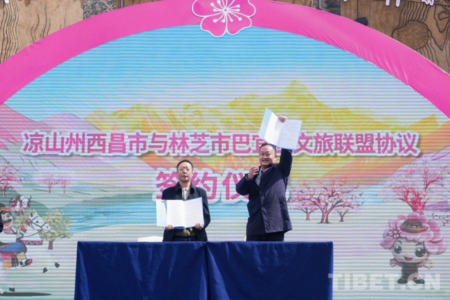 活动现场,两地相关负责人签署《巴宜区与凉山州西昌市文旅战略合作框架协议》,联合发布“巴宜至西昌”川藏精品旅游线路,将雪域桃花、工布文化与彝族风情、建昌古城等特色资源串联整合,标志着巴宜西昌文旅联盟正式成立,两地文旅合作进入常态化、深度化新阶段。