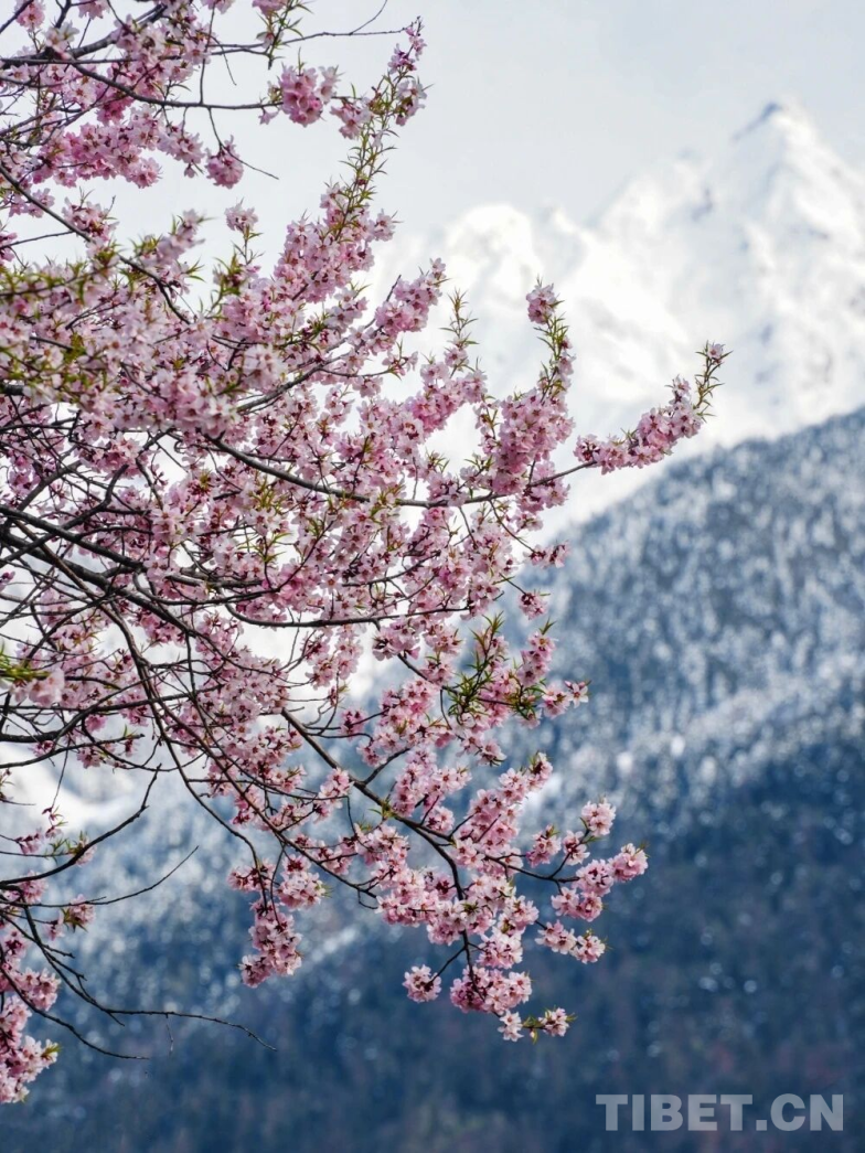 古老的野桃花在高原春日肆意绽放,与远处的雪山同框,诠释着生命在极高之处的绚烂与坚韧