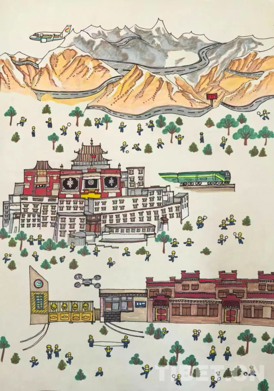 西藏那曲市索县第二小学学生珍查尼玛的绘画作品《星火的雪域足迹》 图片来源:索县融媒体中心