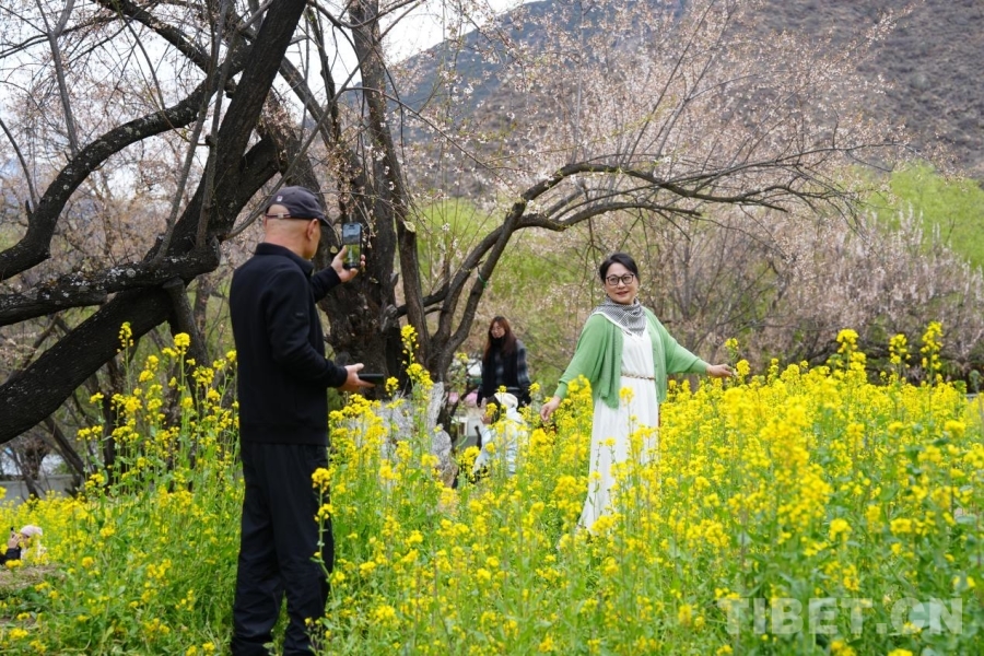 和王建军一样,为这场高原春日奔赴而来的追花人,还有广东姑娘小云。记者见到她时,她正和同行的朋友蹲在桃林旁的油菜花田里,举着自拍杆定格春日瞬间。她分享说:“我这趟旅程,特地坐着火车走青藏线来拉萨,就是想亲身感受一下‘神奇的天路’到底有多震撼。”从拉萨到林芝,车窗外的风景渐次切换到漫山春色,这份独有的旅途体验让她用“不虚此行”四个字做了完美的总结。