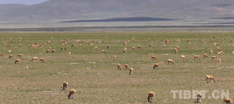 西藏那曲市申扎县境内栖息的藏羚羊群 申扎县融媒体中心供图