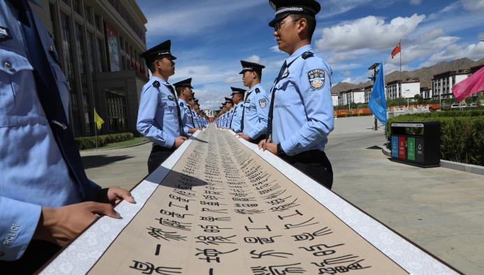 雪域戍边民警书百米《共产党宣言》献礼建党百年华诞