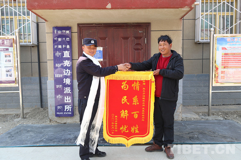 4月13日,西藏日喀则市岗巴县直克乡吉隆茶馆的边巴将一面印有“情系百姓、为民解忧”锦旗送到西藏日喀则边境管理支队直克边境派出所。[详细]
