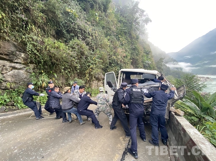 车辆甩尾侧滑 林芝移民警察紧急救援